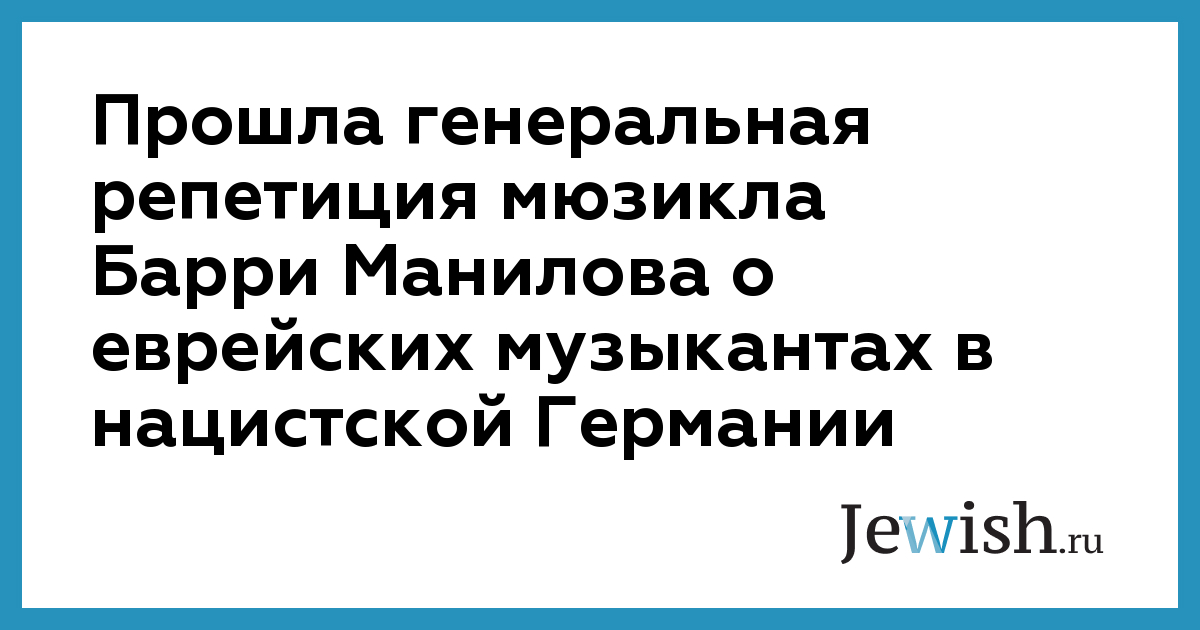 Прошла генеральная репетиция мюзикла Барри Манилова о еврейских музыкантах в нацистской Германии