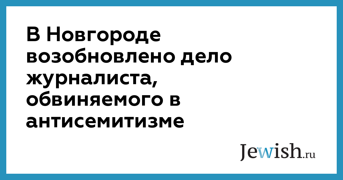 В Новгороде возобновлено дело журналиста, обвиняемого в антисемитизме