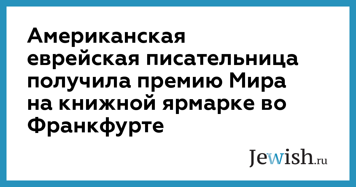 Американская еврейская писательница получила премию Мира на книжной ярмарке во Франкфурте