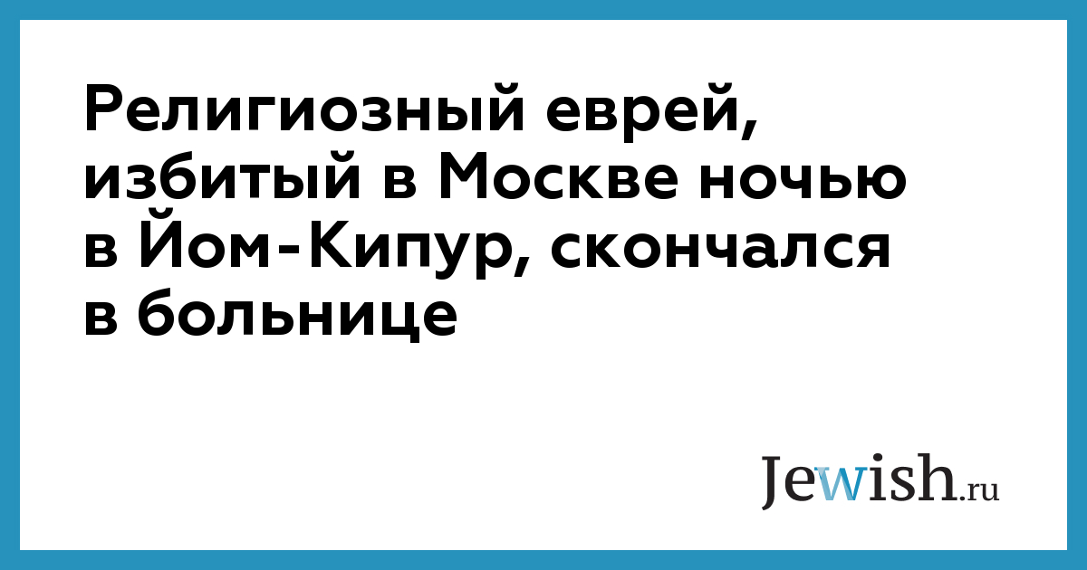 Религиозный еврей, избитый в Москве ночью в Йом-Кипур, скончался в больнице