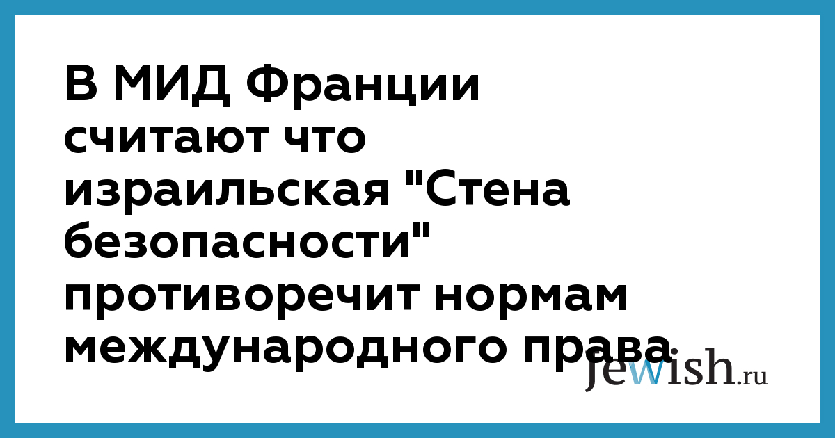В МИД Франции считают что израильская "Стена безопасности" противоречит нормам международного права