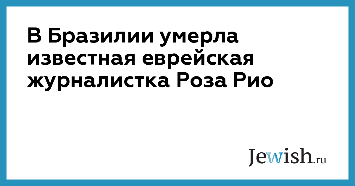 В Бразилии умерла известная еврейская журналистка Роза Рио