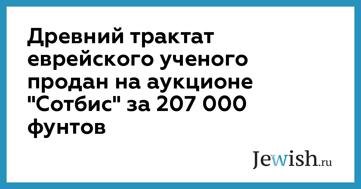 Древний трактат еврейского ученого продан на аукционе "Сотбис" за 207 000 фунтов