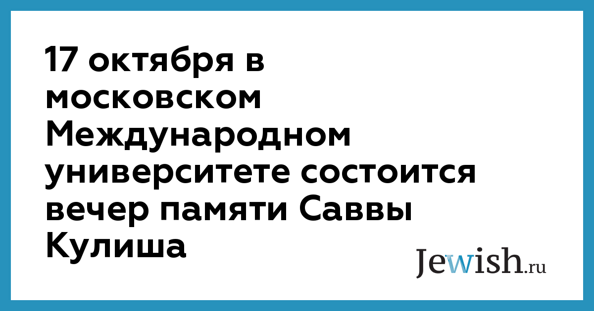 17 октября в московском Международном университете состоится вечер памяти Саввы Кулиша