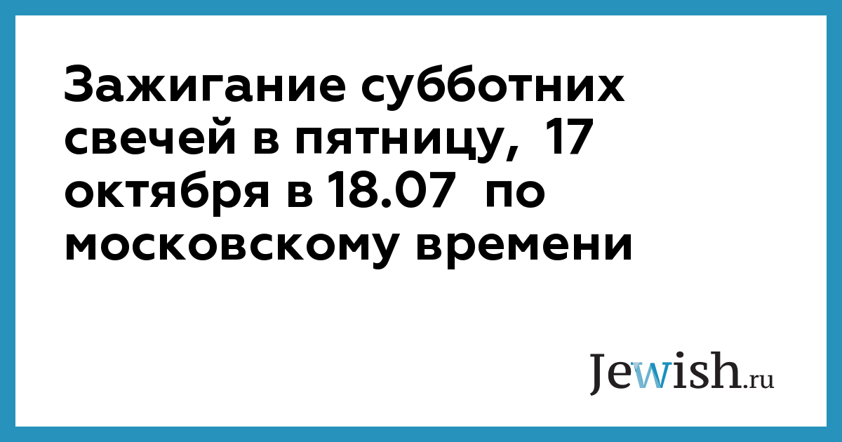 Зажигание субботних свечей в пятницу, 17 октября в 18.07 по московскому времени
