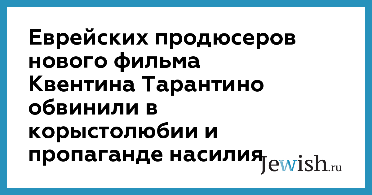 Еврейских продюсеров нового фильма Квентина Тарантино обвинили в корыстолюбии и пропаганде насилия