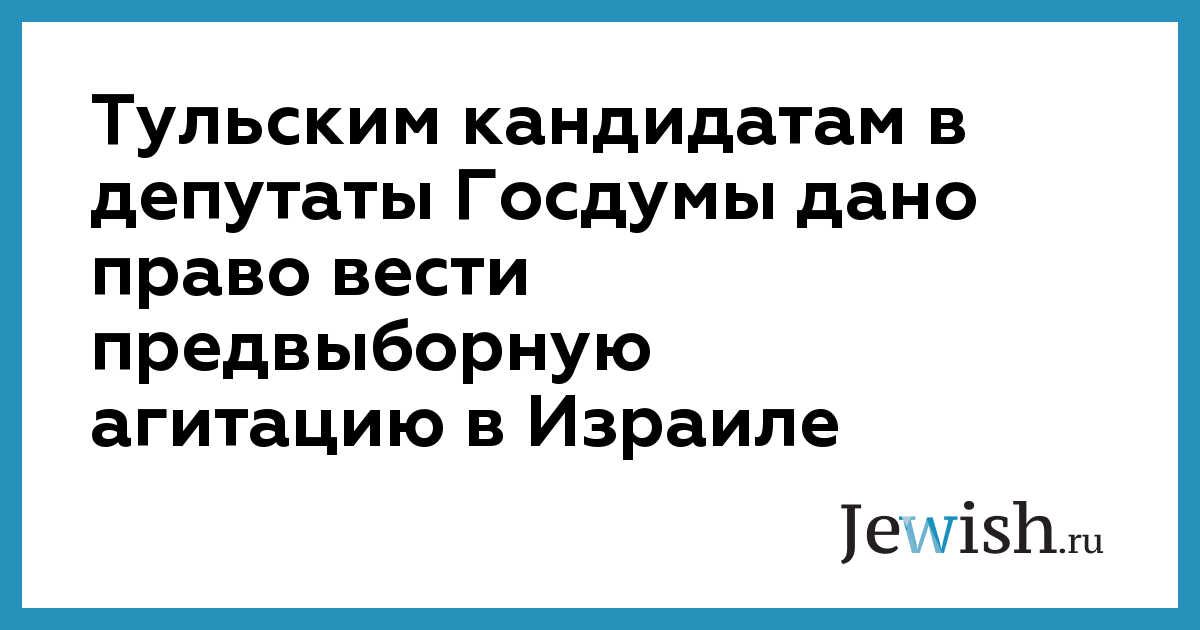 Тульским кандидатам в депутаты Госдумы дано право вести предвыборную агитацию в Израиле