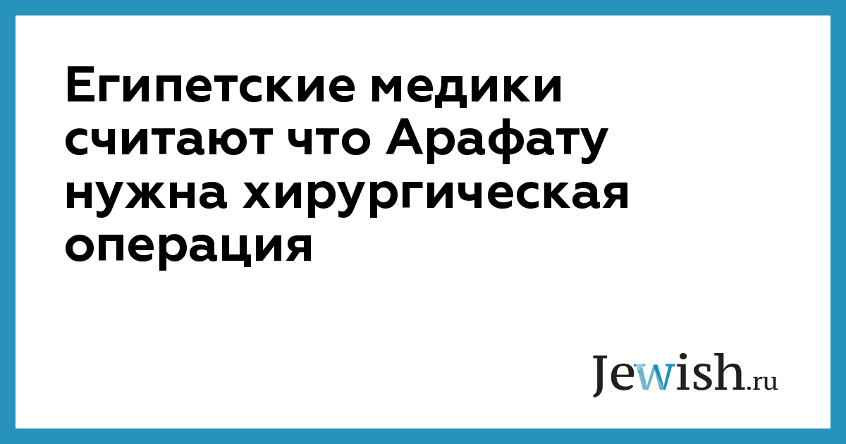 Египетские врачи, прибывшие его обследовать, случайно обнаружили у него желчные камни, которые необходимо удалить", — сообщил помощник палестинского лидера. Вместе с тем информированная межарабская газета "Аш-Шарк аль-Аусат" сообщила, что палестинскому лидеру уже была проведена операция по удалению камней из желчного пузыря непосредственно в здании его резиденции.