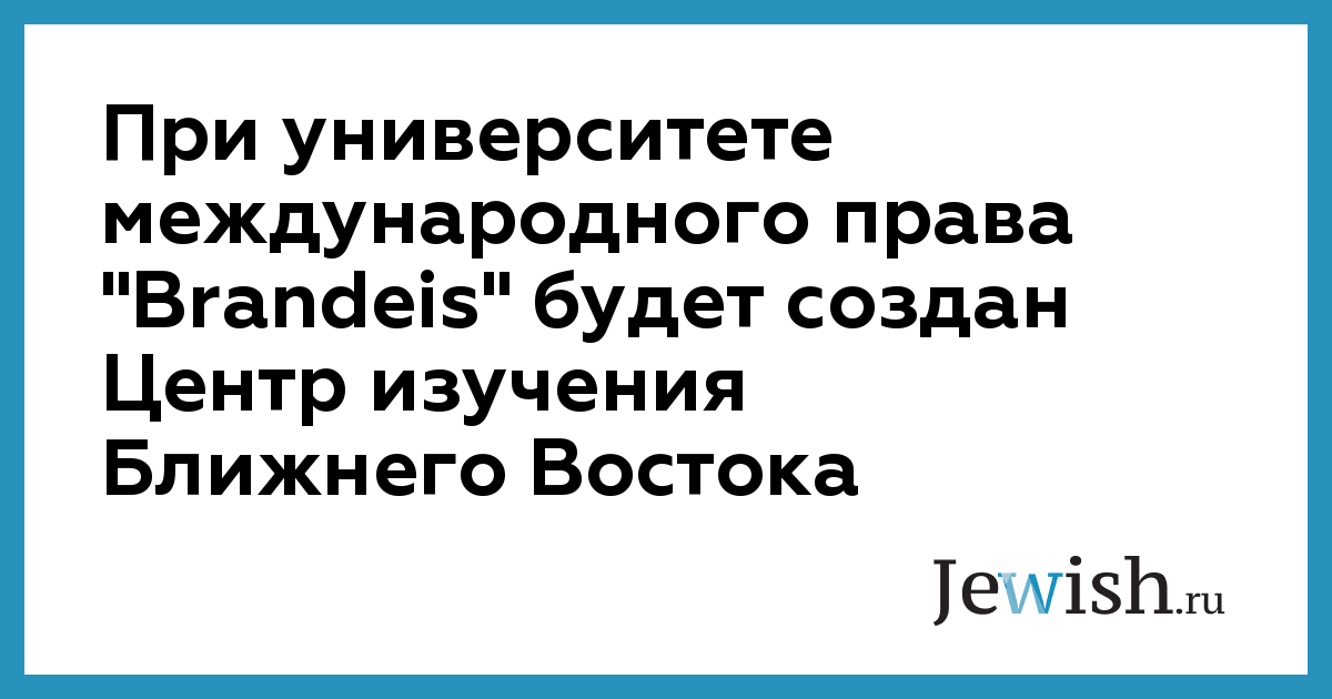 При университете международного права "Вrandeis" будет создан Центр изучения Ближнего Востока