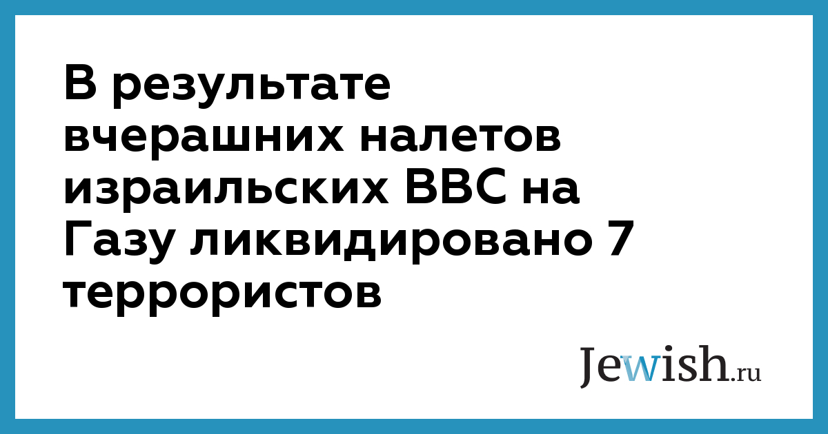 В результате вчерашних налетов израильских ВВС на Газу ликвидировано 7 террористов