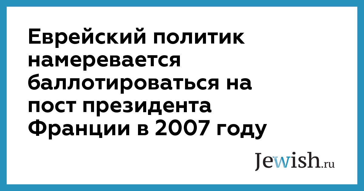 Еврейский политик намеревается баллотироваться на пост президента Франции в 2007 году
