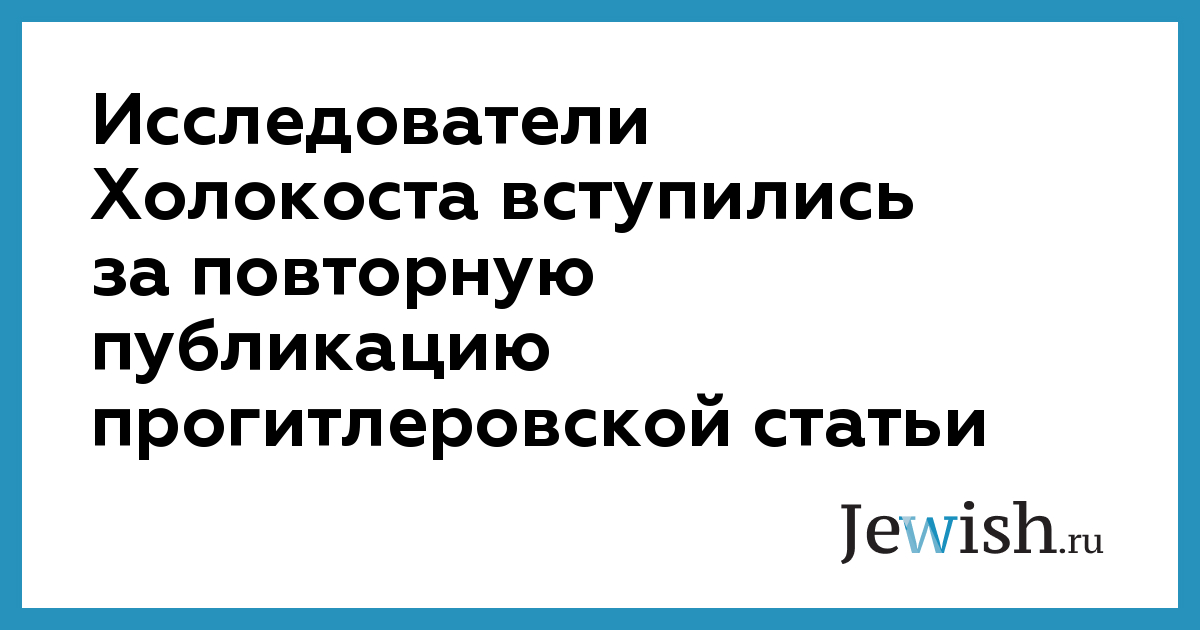 Исследователи Холокоста вступились за повторную публикацию прогитлеровской статьи