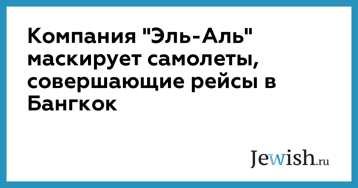 Компания "Эль-Аль" маскирует самолеты, совершающие рейсы в Бангкок