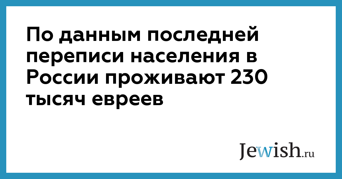 По данным последней переписи населения в России проживают 230 тысяч евреев