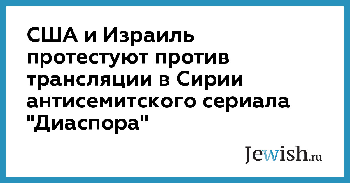 США и Израиль протестуют против трансляции в Сирии антисемитского сериала "Диаспора"