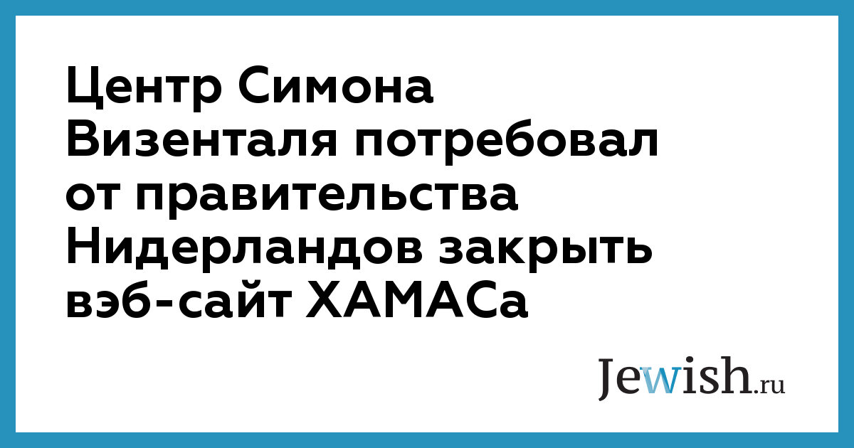 Центр Симона Визенталя потребовал от правительства Нидерландов закрыть вэб-сайт ХАМАСа