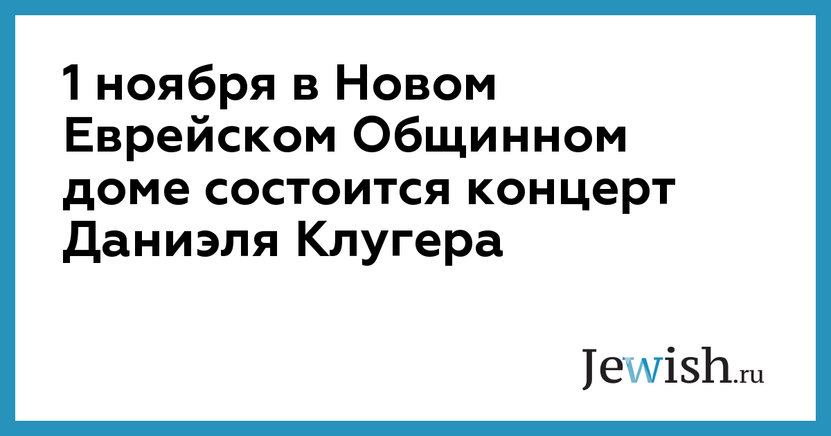 1 ноября в Новом Еврейском Общинном доме состоится концерт Даниэля Клугера