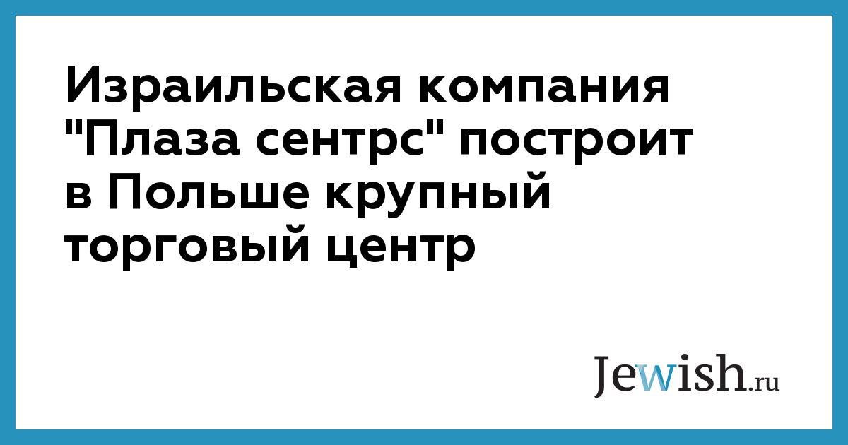 Израильская компания "Плаза сентрс" построит в Польше крупный торговый центр