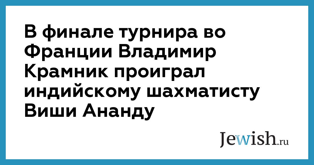 В финале турнира во Франции Владимир Крамник проиграл индийскому шахматисту Виши Ананду