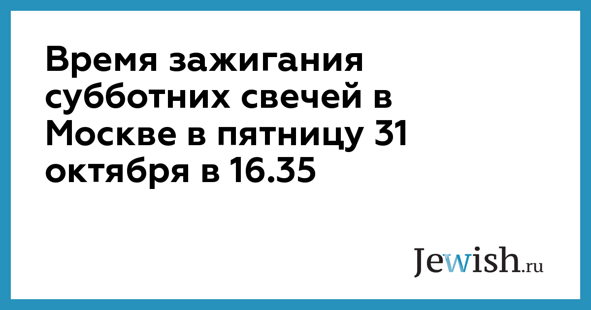 Время зажигания субботних свечей в Москве в пятницу 31 октября в 16.35