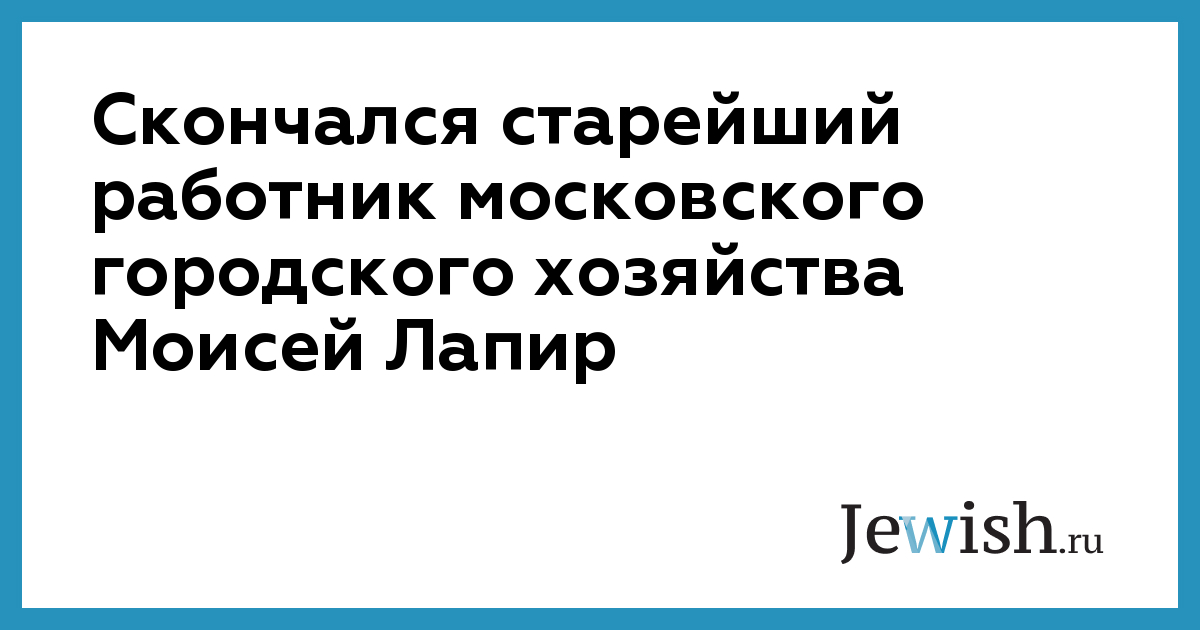 Скончался старейший работник московского городского хозяйства Моисей Лапир