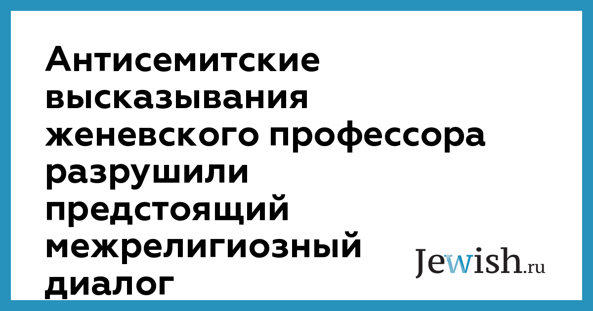 Антисемитские высказывания женевского профессора разрушили предстоящий межрелигиозный диалог
