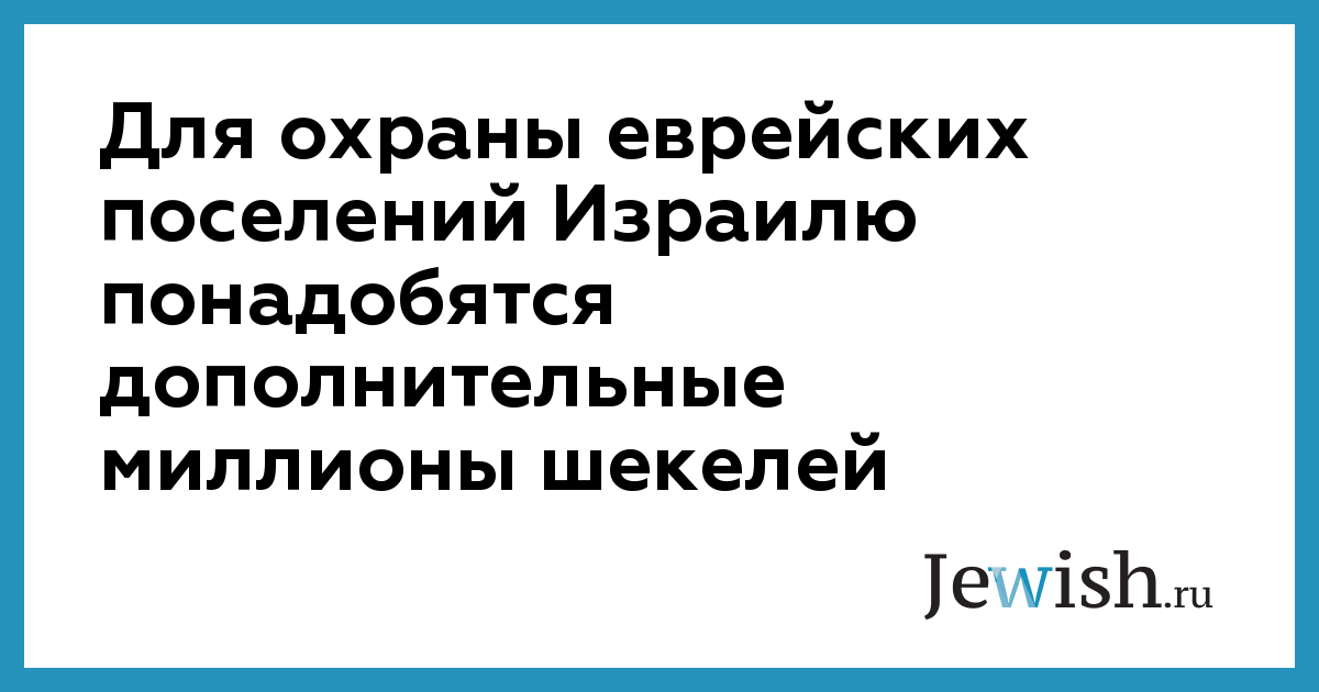 Для охраны еврейских поселений Израилю понадобятся дополнительные миллионы шекелей