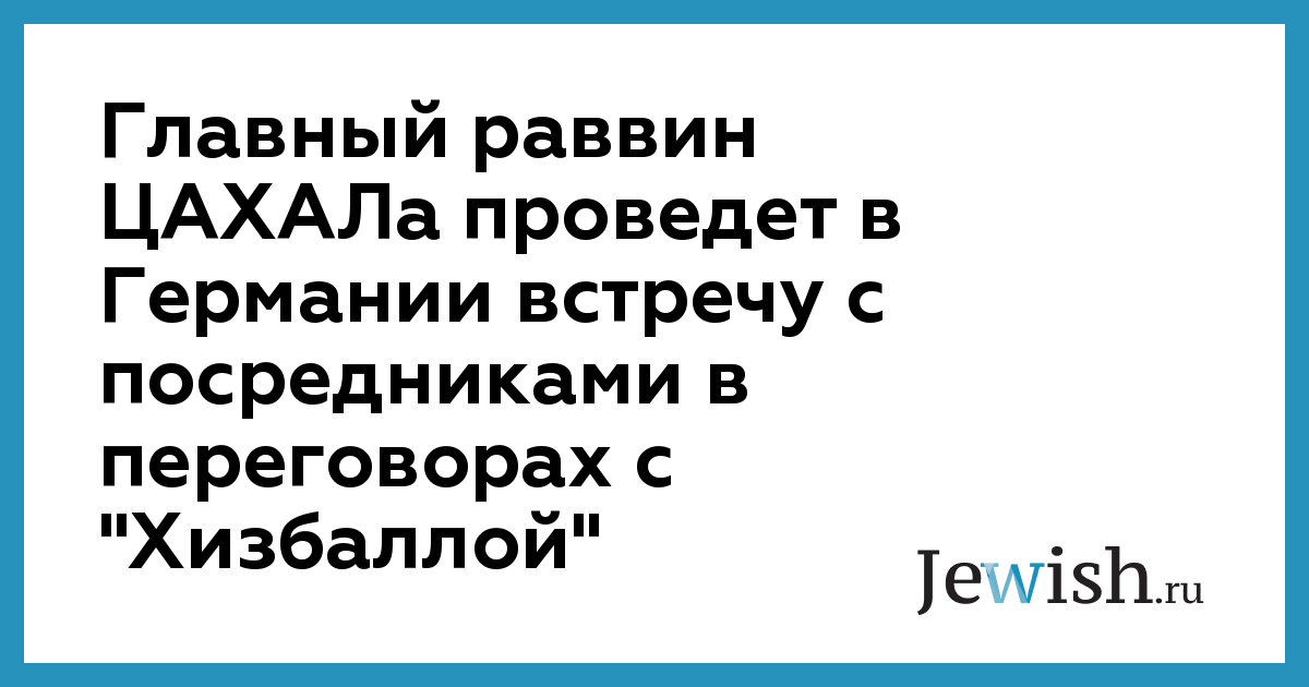 Главный раввин ЦАХАЛа проведет в Германии встречу с посредниками в переговорах с "Хизбаллой"