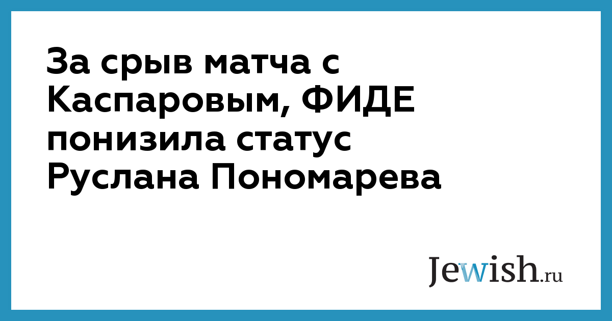 За срыв матча с Каспаровым, ФИДЕ понизила статус Руслана Пономарева