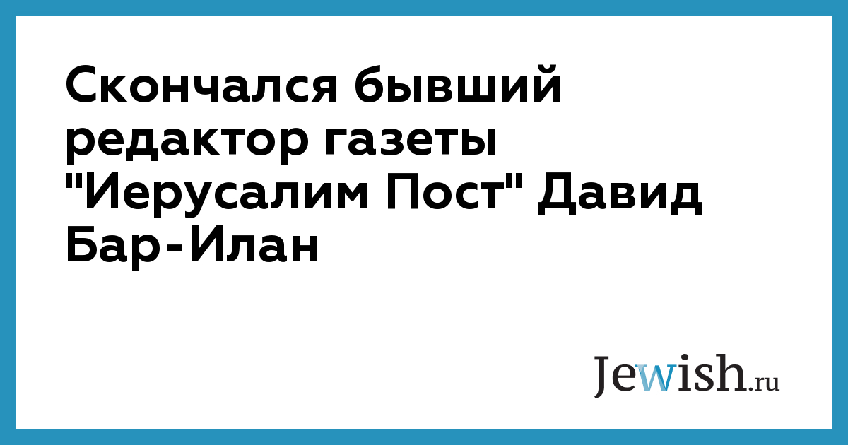 Скончался бывший редактор газеты "Иерусалим Пост" Давид Бар-Илан
