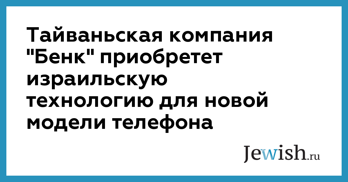 Тайваньская компания "Бенк" приобретет израильскую технологию для новой модели телефона