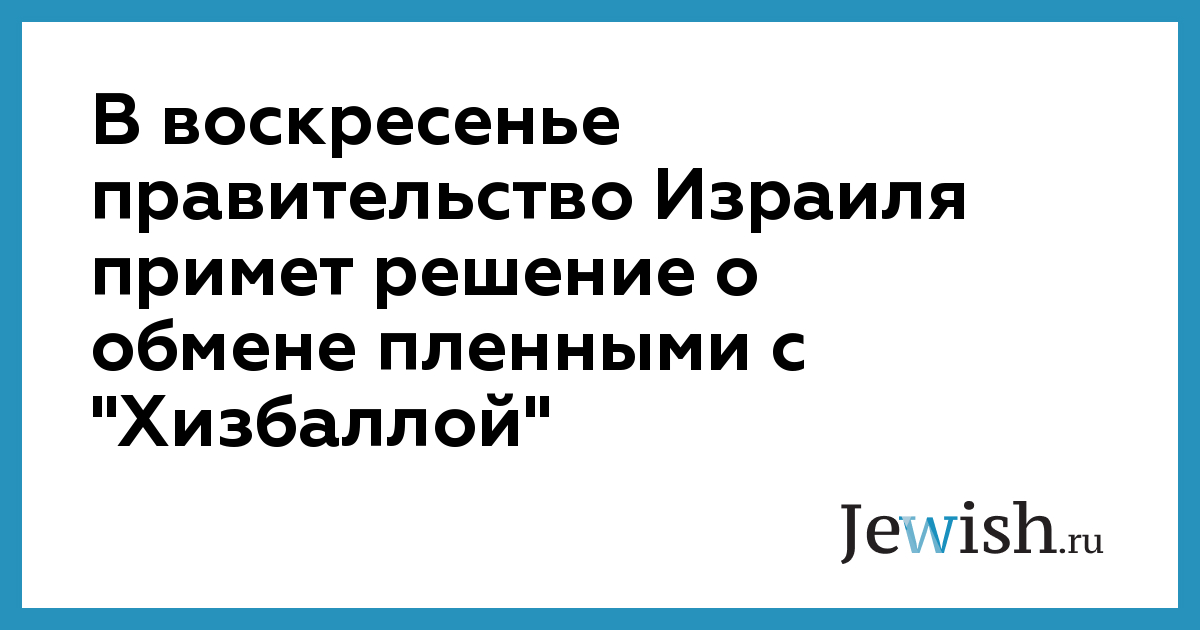 В воскресенье правительство Израиля примет решение о обмене пленными с "Хизбаллой"