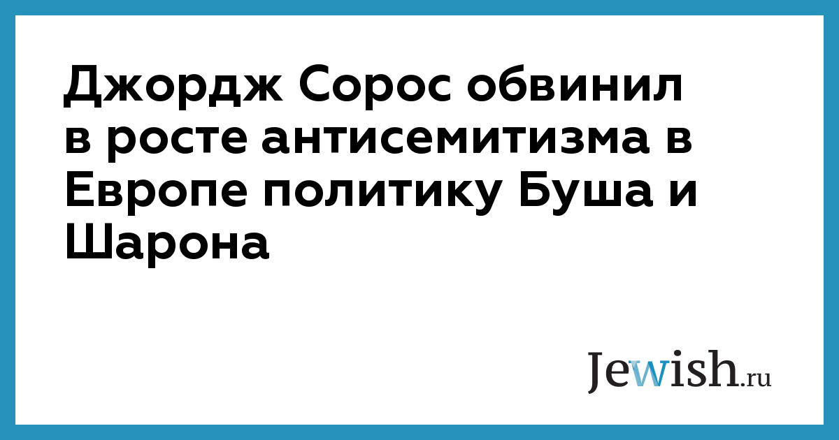 Джордж Сорос обвинил в росте антисемитизма в Европе политику Буша и Шарона