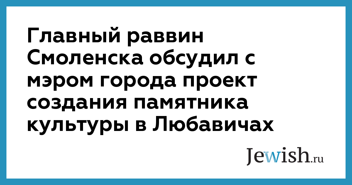 Главный раввин Смоленска обсудил с мэром города проект создания памятника культуры в Любавичах