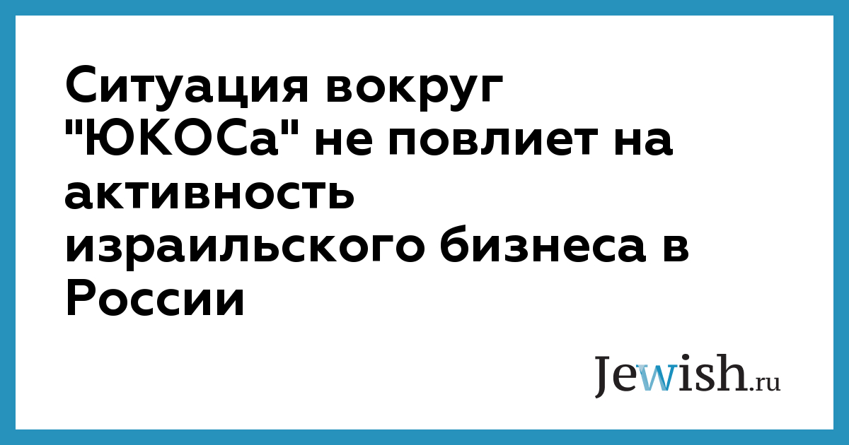 Ситуация вокруг "ЮКОСа" не повлиет на активность израильского бизнеса в России