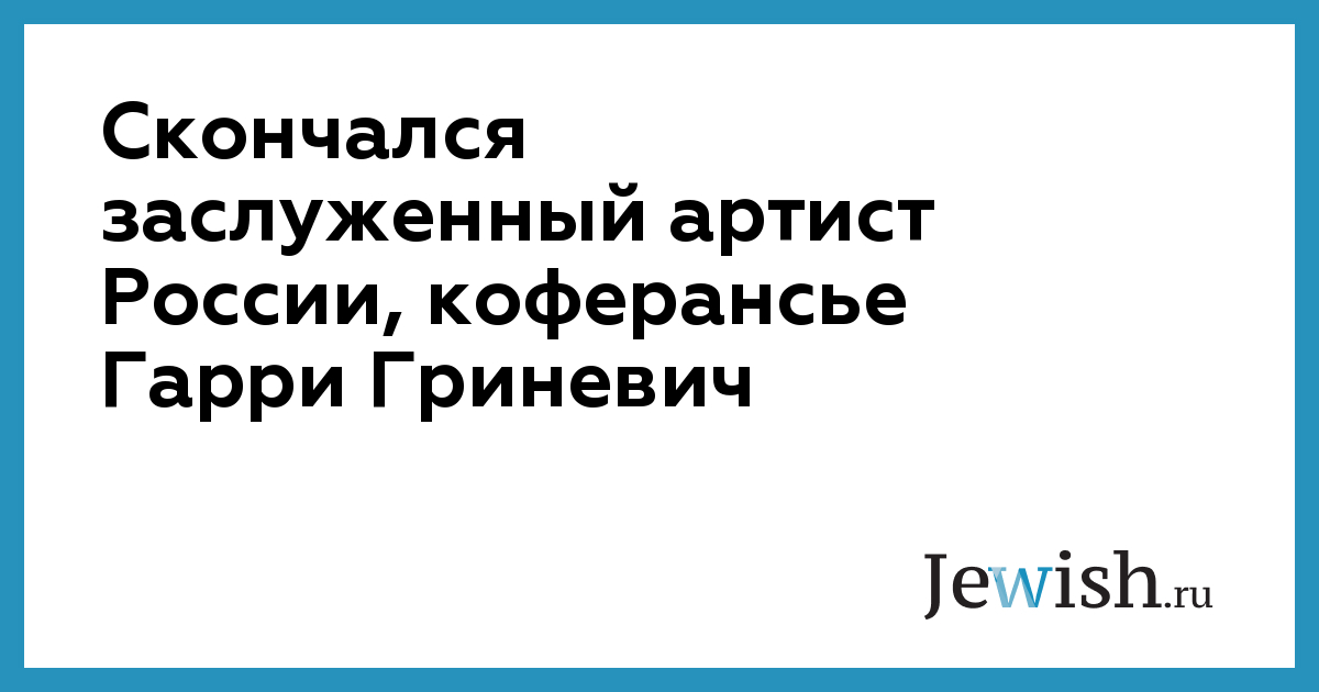 Скончался заслуженный артист России, коферансье Гарри Гриневич