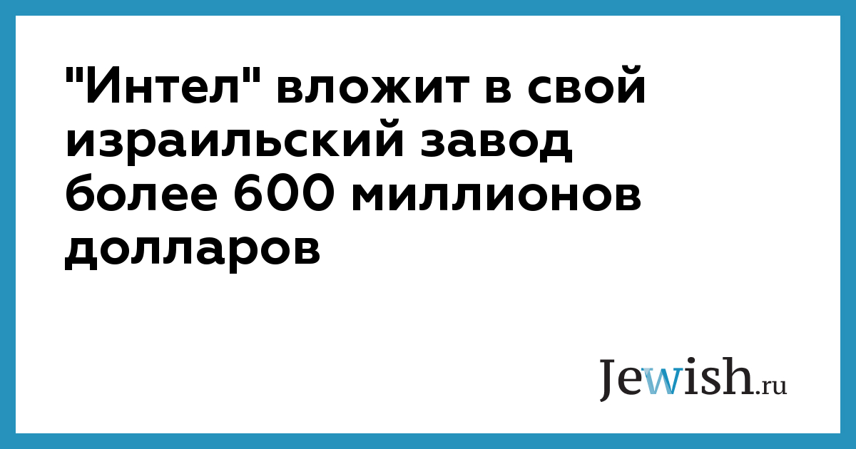 "Интел" вложит в свой израильский завод более 600 миллионов долларов