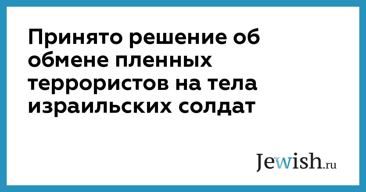 Принято решение об обмене пленных террористов на тела израильских солдат