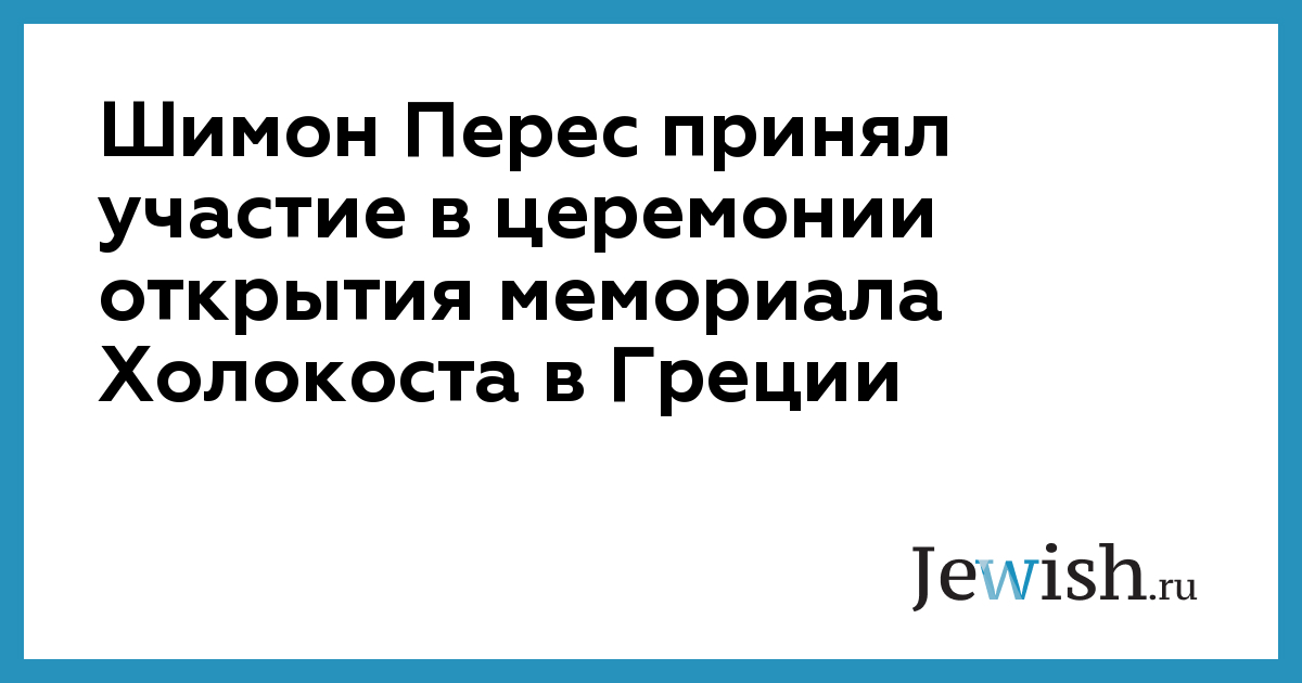 Шимон Перес принял участие в церемонии открытия мемориала Холокоста в Греции