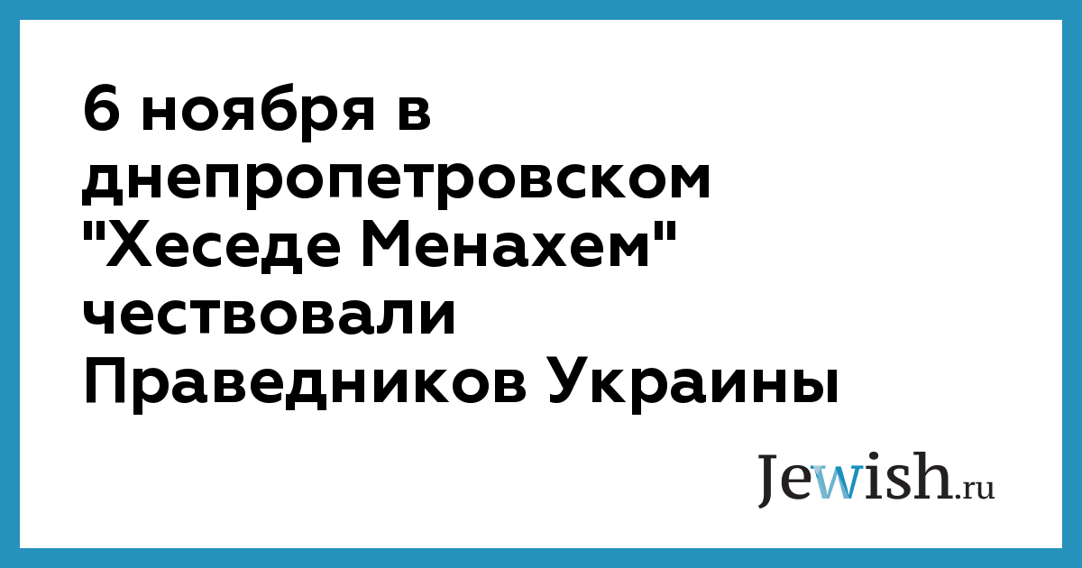 6 ноября в днепропетровском "Хеседе Менахем" чествовали Праведников Украины