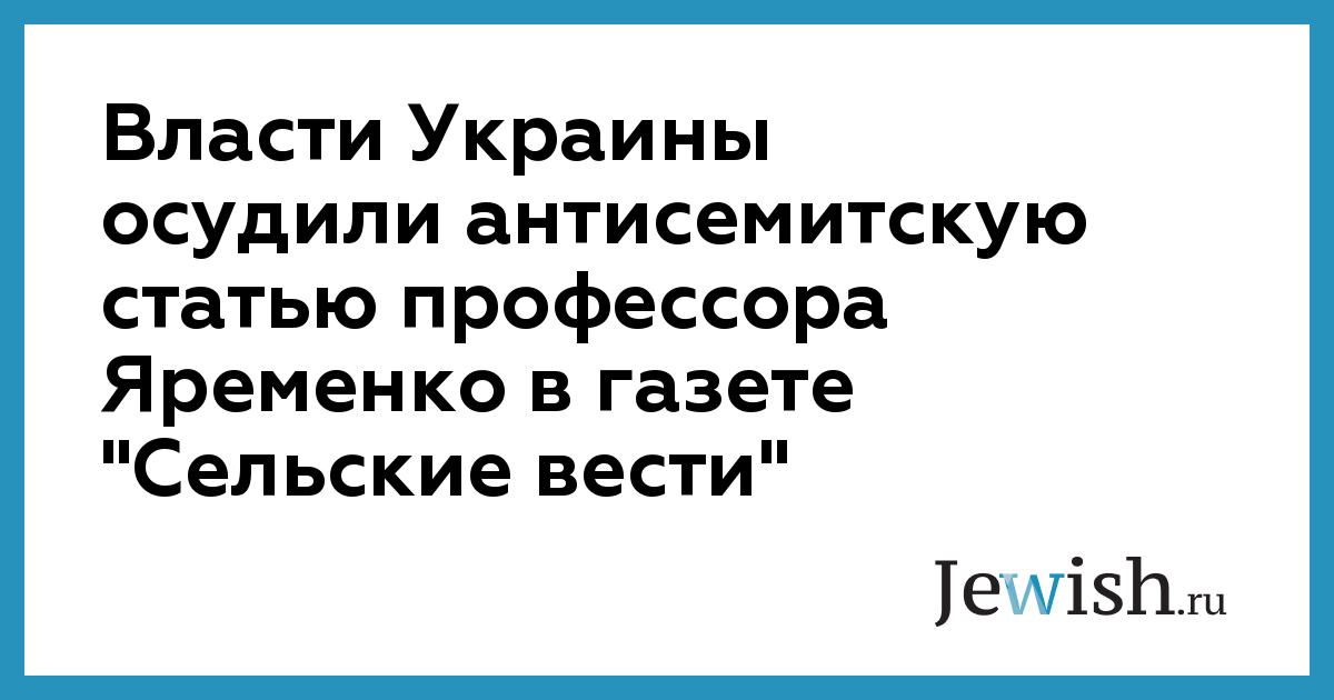 Власти Украины осудили антисемитскую статью профессора Яременко в газете "Сельские вести"
