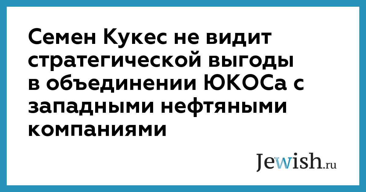 Семен Кукес не видит стратегической выгоды в объединении ЮКОСа с западными нефтяными компаниями