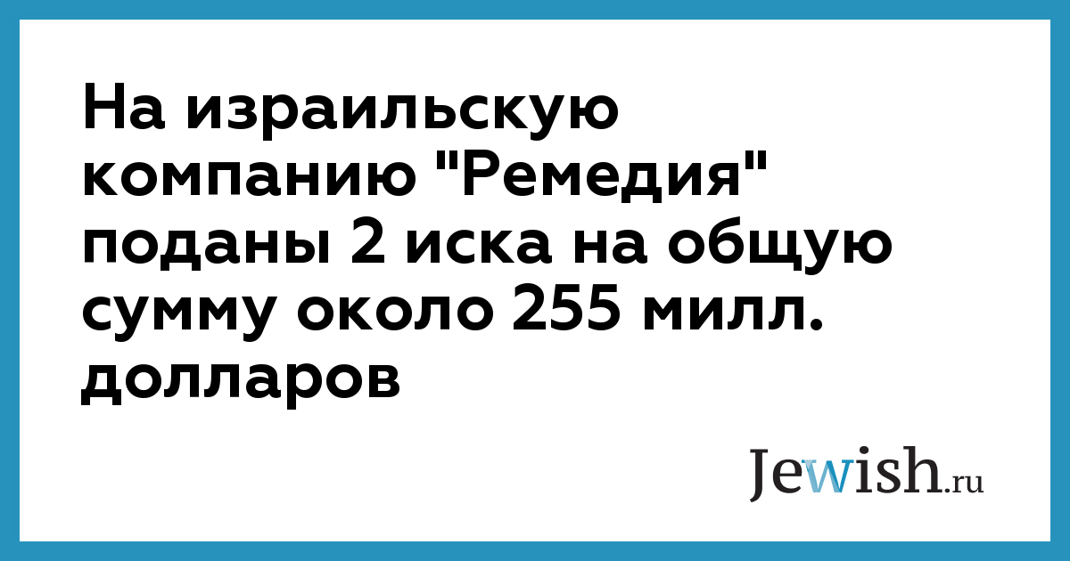 На израильскую компанию "Ремедия" поданы 2 иска на общую сумму около 255 милл. долларов