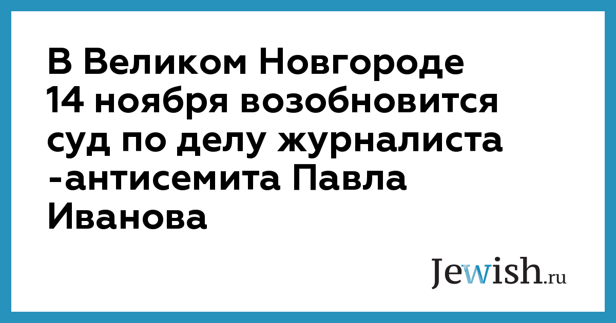 В Великом Новгороде 14 ноября возобновится суд по делу журналиста -антисемита Павла Иванова