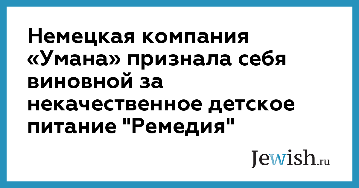 Немецкая компания «Умана» признала себя виновной за некачественное детское питание "Ремедия"