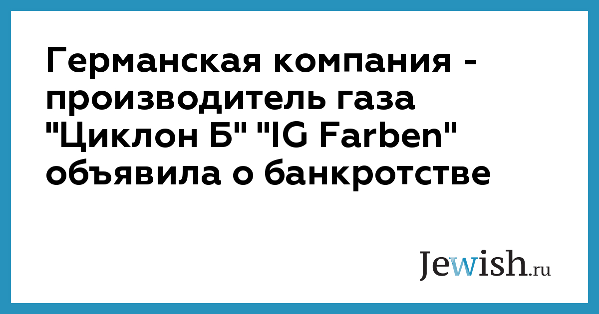 Германская компания — производитель газа "Циклон Б" "IG Farben" объявила о банкротстве