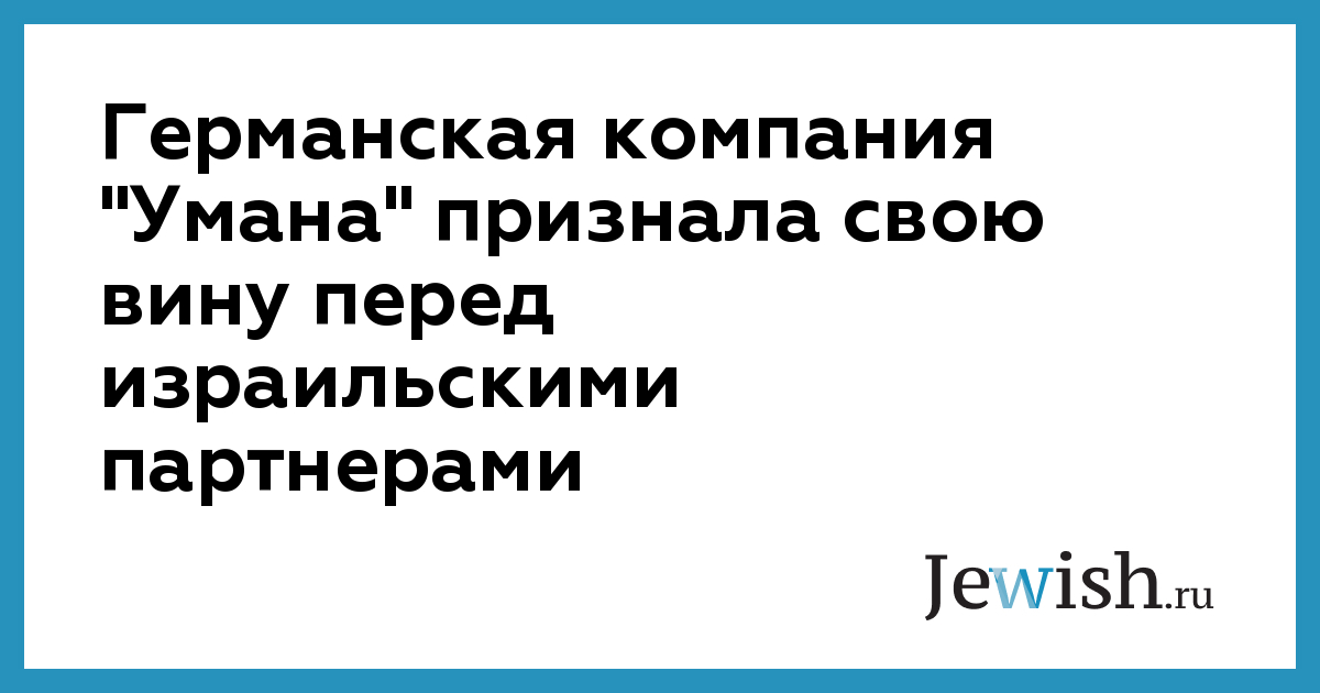 Германская компания "Умана" признала свою вину перед израильскими партнерами