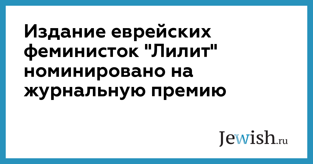 Издание еврейских феминисток "Лилит" номинировано на журнальную премию