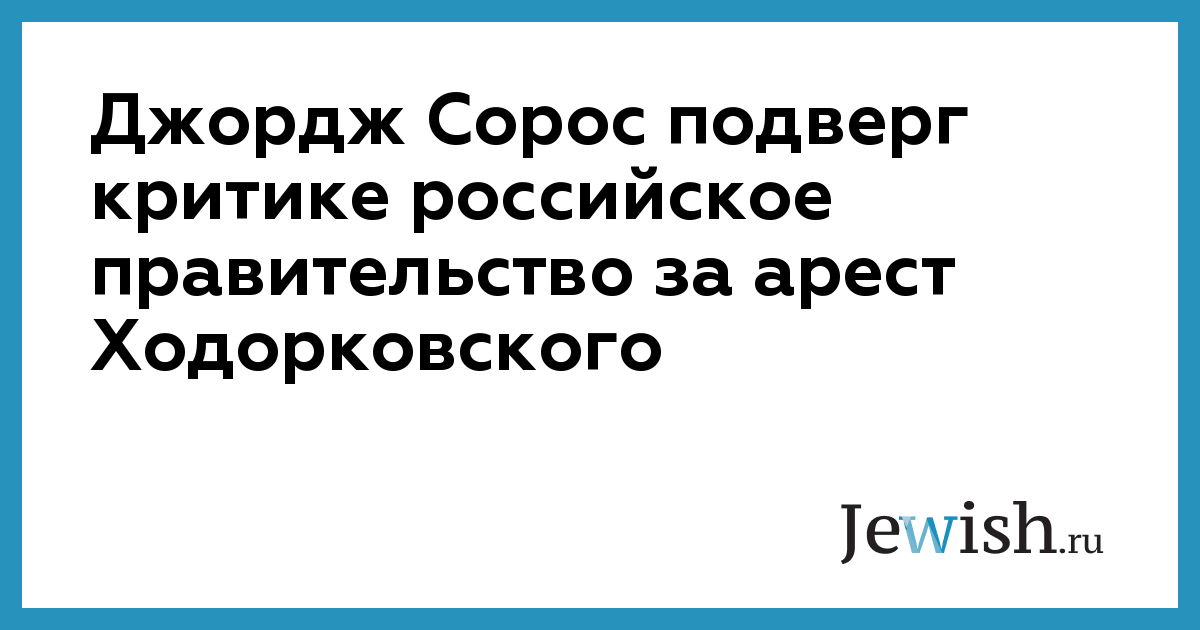 Джордж Сорос подверг критике российское правительство за арест Ходорковского