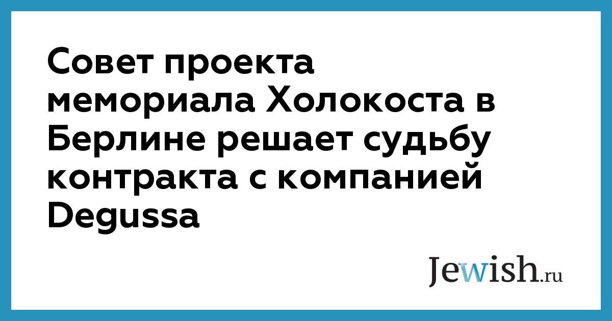 Совет проекта мемориала Холокоста в Берлине решает судьбу контракта с компанией Degussa